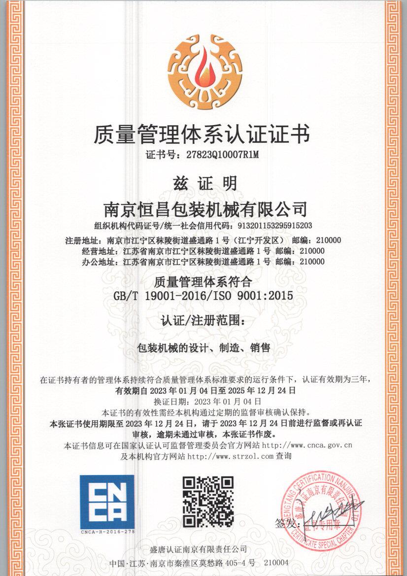 南京恒昌包裝機(jī)械有限公司致力于液體包裝系統(tǒng)整線方案的設(shè)計(jì)制造安裝,其前身為南京恒昌輕工機(jī)械有限公司。